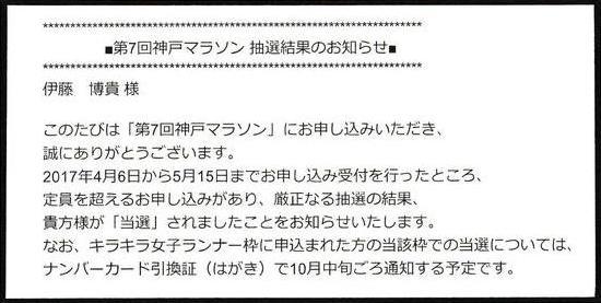 先日、第7回神戸マラソンの当選発表がありました。